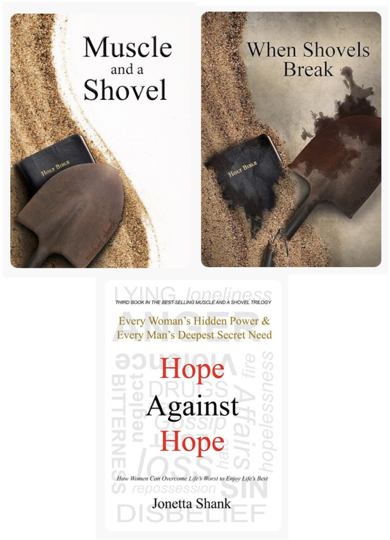 The complete trilogy includes Muscle and a Shovel, When Shovels Break, and Hope Against Hope. Churches can order bigger volumes for deep discounts.